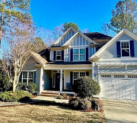 Custom craftsmen style former Parade of Homes! You will feel AT HOME the moment you step onto the covered rocking chair porch and enter this open floor plan with site finished hardwoods throughout main, vaulted family room with fireplace, SS appliances and granite countertops and sitting island in kitchen. Primary bedroom w/ WIC, bathroom, second bedroom and laundry are also conveniently located on 1st floor. You will appreciate the craftsman style molding and attention to details throughout! Tread staircase leads to 2 more bedrooms, and 2 bonus rooms, providing many flexible options for your needs! As you move to the outdoors a large entertaining deck is located off the kitchen which leads to a spacious paver patio complete with sitting wall, fire pit and outdoor kitchen! The backyard is private with mature landscaping. Other features include an extra large driveway and plenty of storage spaces. You will also enjoy the community pool, playground and community events. Ready to be At Home?!