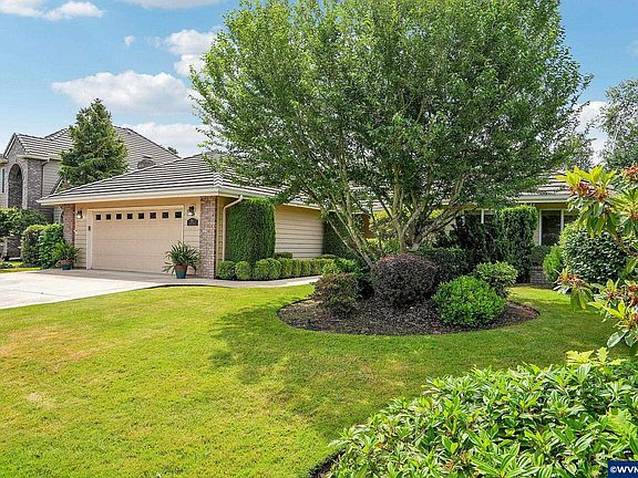 Enjoy spectacular golf course views from this beautifully maintained 1720 sqft home on the 16th at McNary w/ serene covered patio designed for year-round enjoyment. Newer high-end kitchen cabinets & countertops, island bar seating, skylights & LVP flooring. Spacious bedrooms, gas fireplace, ample storage & central AC. Laundry room with cabinets, sink, ironing board & half bath. Oversized garage with storage & pegboard. New driveway, tile roof & irrigation system. Low HOA fees. Come see this gorgeous home!