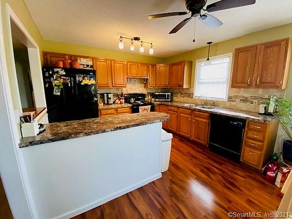 LONG PRIVATE driveway leads to RANCH on 3.21 ACRES! REMODELED BRIGHT APPLIANCED eat in kitchen leads to a HUGE 12 x 20 DECK overlooking the fire pit and shed. LARGE living room and lovely full bathroom and 3 bedrooms on the first floor. 800 sq ft in WALKOUT LOWER LEVEL w/ WOODSTOVE and NEWER $1200 FRENCH doors (JUST NEEDS CARPET). Washer, dryer and shed conveys. Close to 395 and RI line.