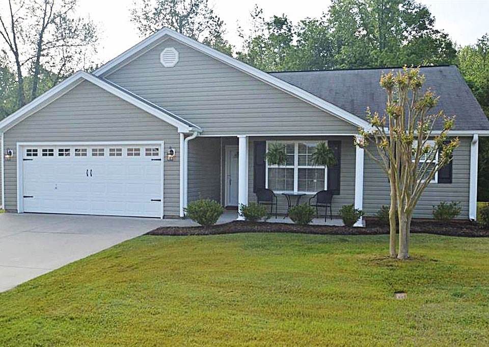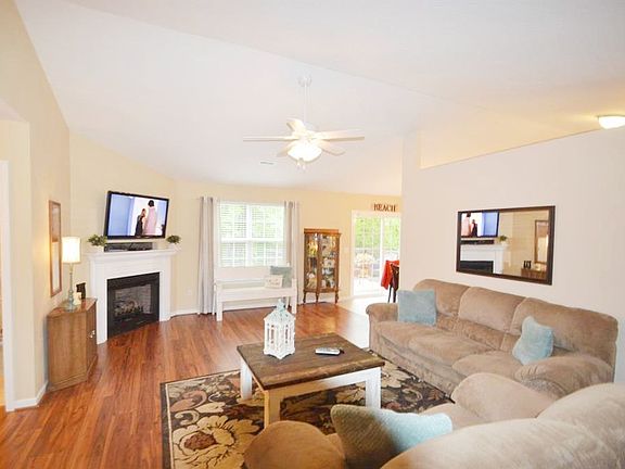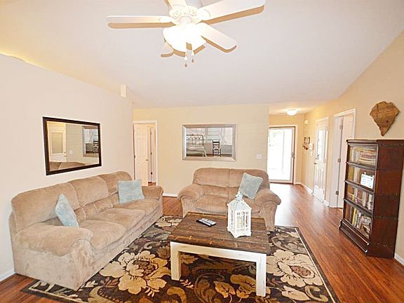 CHARMING RANCH HOME IN EXCELLENT MOVE-IN READY CONDITION! Step right in to this lovely home and you will notice the stunning floors that welcome you. The soaring cathedral ceiling and attractive fireplace in the large great room beckon you to come in and relax. The huge eat-in kitchen offers tons of cabinets and counter space, plus a great view of the deck and backyard. The private master bedroom awaits you with ample space to relax, complete with a walk-in closet and en suite bathroom featuring a garden tub and separate shower. The split floor plan has an additional two bedrooms away from the master suite that offer a generous amount of natural light and space. This fabulous home features numerous updates in beautiful light fixtures, ceiling fans, plumbing fixtures, and the gorgeous new mantle over the fireplace; plus all appliances remain.
