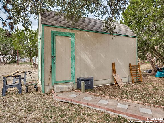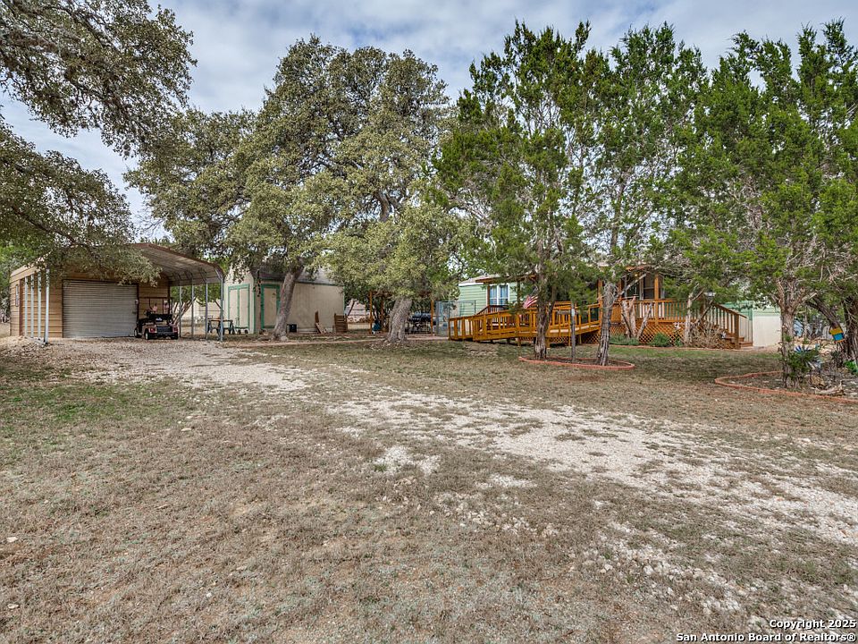 Charming Home in Gated Community! This 2-bedroom, 2-bathroom home sits on 2 lots with large mature Oak trees, a perfect blend of comfort, convenience, and accessibility. A covered front porch with a wheelchair-accessible ramp provides a welcoming entry, while the open layout inside creates a bright and inviting space. The spacious kitchen and living area flow seamlessly, making it easy to entertain or enjoy everyday living. Each bedroom offers ample space, with the primary suite featuring an en suite bathroom for added privacy. Outside, the carport with an attached storage shed adds convenience, while the separate additional shed provides endless possibilities for hobbies, storage, or a personal retreat. With its thoughtfytul features, gated security, and plenty of outdoor storage, this home is a rare find. Plenty of amenities that will surely keep you active all summer long, swimming pool, volley ball court, community center, boat ramp, fishing & more when the Medina River is full and flowing! Schedule a tour today to see all it has to offer!