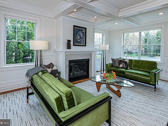 While this Riverside home was just built in 2019, it has an established presence due to its timeless curb appeal and deep backyard with a lawn that meanders through tall trees and planting beds. The airy foyer comes as a delightful surprise, giving a glimpse at the broad, open spaces spanning the back of the house. Classic molding enhances the doorways to the formal rooms, both topped with coffered ceilings. A stunning brass chandelier is the centerpiece of the dining room, while a gas fireplace beckons in the living room. A second fireplace in the family room has such grand proportions that it also visually warms up the breakfast area and the kitchen, which wows with a commercial-style fridge, Thermador double range and an expansive island topped with extra-thick quartzite. A beverage bar is great for entertaining and comes in especially handy when the nearby guest suite, totally separate atop the garage, is occupied. Should first floor accommodations be necessary, an office with direct access to a full bath is ready to serve. More flexible options exist on the finished lower level with lofty ceilings and a full bath that’s just as attractive as the others. All four upstairs bedrooms are full suites with organized walk-in closets and special features, like a tray ceiling or eye-catching geometric tile. The primary suite has the added amenities of an oversized marble shower and a slipper tub. This house exhibits premium quality construction with finely finished millwork and top-of-the-line materials everywhere, even outdoors. You’ll find the maintenance-free deck and paver patio just as flawless and inviting as the interior!