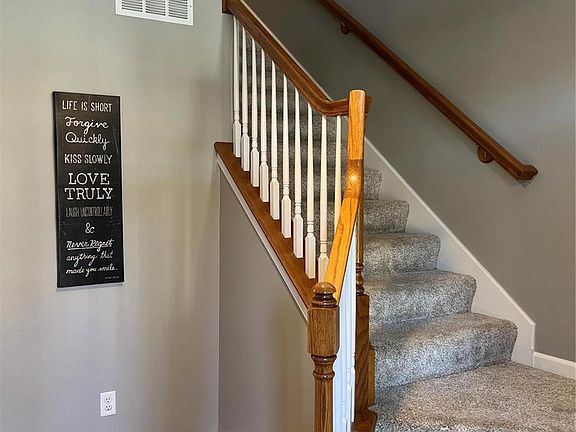 Great location close to Page Ave Extension with easy access to Hwy 364. New roof in 2023, newer HVAC and updated paint help to make this move in ready. The main level boasts 9' ceilings, awesome Pergo wood floors throughout the main level, crown molding, upgraded front door w/ sidelights and a transom window, an awesome kitchen w/ 42'' maple cabinets, stainless steel appliances and a boxed bay window. Formal dining room, a large great room that has canned lights and that leads to a deck, private patio area lush with landscaping and privacy fencing. The upstairs has 3 bedrooms and an upstairs laundry. The master suite has a walk-in closet and a large master bath with an adult height double bowl vanity. Other custom features include: upgraded brushed nickel fixtures, panel doors, picture frame molding, chair rail, crown molding in the great room and 2 bedrooms, 22X22 oversize 2 car garage! HOA fee is only $157.50 per month! Duplicate listing refer to mls #24036073 Additional Rooms: Workshop/Hobby Area Location: Interior Unit