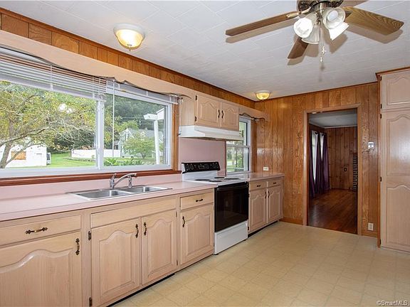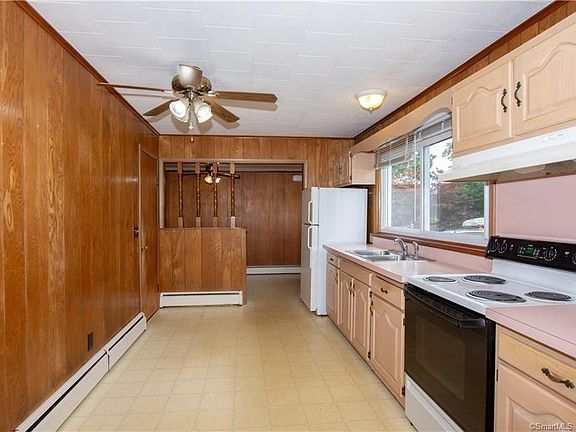 Spacious Ranch style home. Hardwood floors, applianced kitchen, first floor den. Walk out basement with half bath. Great workshop potential. 1.8 Acres of property. Located near shopping and 395. Great bones but home needs some work. Seller will be selling AS IS.