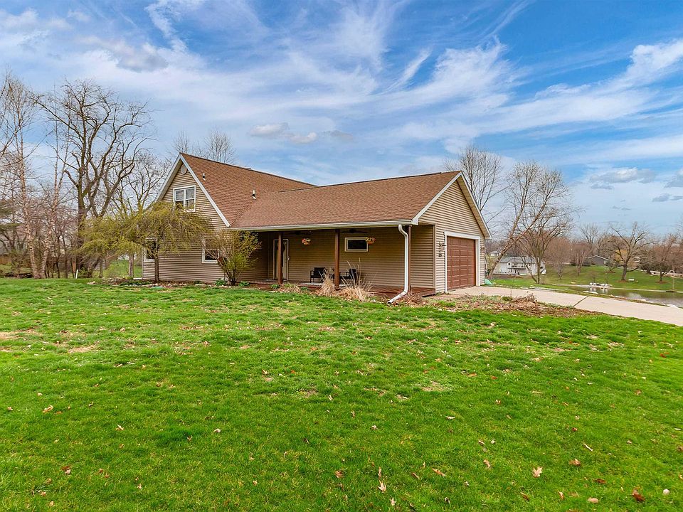 This Homes boasts 3 Bedrooms - 2 Baths - 2 Car Garage on a Large Double Lake front lot (Lot 28 = .36 acres & Lot 29 = .49 acres) that is nearly 1 acre of Privacy!. The Living Room, Kitchen, Office, Dining Room & Rec Room all over look Beautiful Lake Renee! The kitchen has many updates and the baths are updated as well. The home is also wired for generator back up and has a wood burning stove connected to furnace so you can heat by wood! The Nice lake frontage allows for fishing and small craft. When your not on the water you can enjoy golfing on a Jack Nicholas designed course. Or relax in your 27' above ground pool. New liner 2022 plus sand filter.