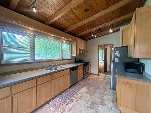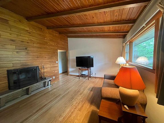 Beautiful ranch home in the heart of town. 3 bedrooms, 1 bathroom and an attached 2 car garage. Large eat in kitchen has been updated and has a lot of cabinet space. Kitchen appliances are newer. Open concept living room and formal dining room with vaulted ceilings and a cozy fireplace. Modern bathroom has recently been updated and includes porcelain tile. Relaxing screened in porch overlooks the back yard. Located close to the high school and elementary schools and half a block from the aquatic center.