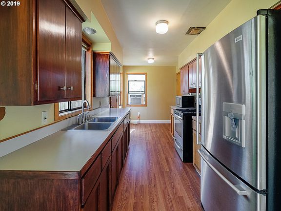 One level on huge .34 acre usable lot. Beautifully remodeled bath with extensive tile and natural wood. Hardwood floors under carpet everywhere except kitchen, which has new wood laminate floors. Energy saving systems, including 96% efficient furnace and tankless water heater. Huge level yard w patio and firepit. R2 zoning allows up to 7 units; buyer to verify. Perfectly livable now with upside from future development potential. [Home Energy Score = 4. HES Report at https://rpt.greenbuildingregistry.com/hes/OR10028953]