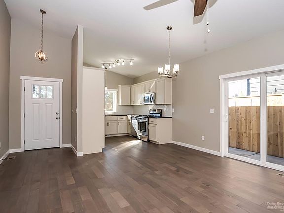 Move-in Ready! Single level w/ efficient open great room plan. Vaulted ceilings, modern white kitchen w/ full height subway tile backsplash, stainless appliances, solid surface counters in kitchen & baths, under mount sinks & custom cabinets. Includes full landscaping, hardy siding, 30-year roof, lifetime windows, high efficiency gas furnace & Central AC. Located just over 1mi from Deschutes River to launch your outdoor adventures, minutes to Old Mill District for shopping/dining, & steps from canal trail.