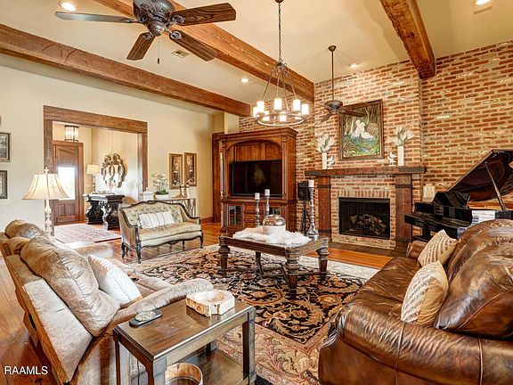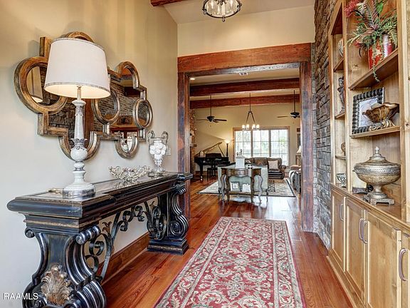 A tranquil oasis awaits you in this French Provincial 4-5 bedroom, 4-1/2 bath home encompassing 5366 sf and a whopping 8762 sf under roof! Its simply paradise on 3.967 acres with a stocked pond, Gunite pool & waterfall hot tub. When you arrive at this fabulous estate, you will be greeted by lush landscaping, lengthy driveway and 3-car-garage tucked behind a gated brick wall with mechanical iron gate. This sprawling estate has hosted two weddings and countless catered parties with full bands! The foyer is stunning with a wall of stone masonry and custom shelving. The living room is grand with a large hearth to cozy up to, and the ceilings throughout are clad with solid repurposed beams that have a history of their own.With an open concept floor plan and 9 antique solid heartwood pine, the chefs kitchen has island seating for 6, a Sub Zero refrigerator and Wolf appliances, including 6-burner commercial gas stove (plus griddle), double convection ovens, bread warmer, drawer-style microwave, ice maker and dishwasher. The pantry is oversized and can house all your canned vegetables grown from the raised, irrigated garden outside. The pool and 33 x 36 sf veranda hints of an extraordinary lifestyle with a huge wood-burning fireplace, and an outdoor kitchen customized with brick flooring, an Evo Hibachi grill, gas grill with custom hood, ice maker, sink, island seating, pool shower and ½ bath. From the study/art room, gaze upon the acre-long stocked pond with fish feeder. Dining room includes a wet bar with wine cooler and second study, or card room. This home even has a large holiday closet and a work-out/weight room, which could easily be converted to a 5th bedroom or family den. The master bedroom has a beamed, vaulted ceiling and looks out onto the birds of paradise and backyard retreat. The natural stone wall is repeated in the luxurious master bath with custom built-ins, huge soaking tub and separate shower. The fit and finish is exemplary as no caulk was used in the crown molding, baseboards, door and window trim. Bedrooms 2 and 3 have spa-like bathrooms, and the guest bedroom is serene looking over the fountain surrounded by landscaping. DONT MISS THE ATTIC! It is spray-foamed and maintains a great level of comfort. It is decked close to its entirety, and you will also find the air-conditioned electronic room complete with camera system and security hub. This is a wonderful place to store additional holiday décor. There is also additional decked attic space above the three-car garage. Outside spaces include the pump house with whole house filtration system & storage, a huge 13 ceiling storage room/workshop, and garden shed. All kept in exceptionally neat and clean condition. This is a home like no other, and you will know it immediately!