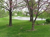 LAKE View-one of the most beautiful lake front properties that you will find in this area. Private lake owned by 10 home owners. Quiet subdivision - 1 acre lot, mature trees. 1744 sq foot ranch, walk out partially finished lower level offers a formal living rm or great home office, family rm with gas fireplace, bar or coffee bar area. Large eat in kitchen with a pantry, updated counter tops, gas stove, refrigerator negotiable,back splash,ceiling fan,laminate flooring,atrium door. Master bedrm with box bay & overhead lighting, walk in closet & full bath. Bedrm 2 & 3 offer nice closet area, overhead lighting. Common bath w/tile, updated vanity, shower with doors. Lower level offers a sleep room with walk in closet, full bath w/pedestal sink, family rm w/gas fireplace, game room area, utility rm, storage rm with shelves. 1 car oversized service garage for equipment & patio furniture storage PLUS a 2 car garage. Updates include Vinyl siding, AC, HV, Water heater, windows, garage door.