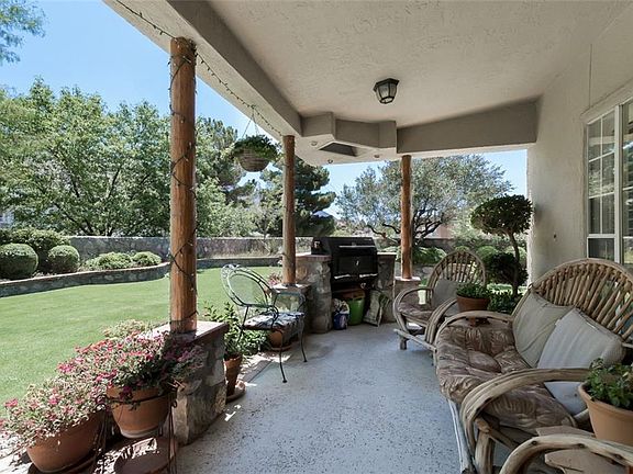 Immaculate home with great curb appeal and located on quiet cul-de-sac. Formal LR with vaulted ceilings, FP, & stained glass windows. Dining room with skylights. Gameroom with wood ceilings, Den with built-in desk area & bookcases plus kiva fireplace & beamed wood ceilings. Gourmet kitchen with island, Avonite countertops, and stainless appliance package. 4 BR plus maids quarters...Master bathroom with whirlpool tub, glass block windows, walk-in closet & double sinks. Beautiful covered patio area with outdoor grill. Parklike grounds in backyard with view of Franklin Mountains. (Amenities: Saltillo tile flooring shutters, evaporative & refrigerated air, wood ceilings, manicured yard)