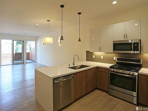 Large, open living room has large deck at one end, a kitchen separated from the living room by a counter with sink that provides bar-style seating at the other. Kitchen has all stainless appliances including gas stove, microwave, dishwasher & refrigerator with water & ice dispenser. Huge deck can accommodate a lots of outdoor furniture, perfect for BBQ. Bedroom has a large closet & a window opening onto the deck. Bath has standard shower-over-tub. Stacked washer & dryer are in a large closet. An additional room with closet would make a great office, den or guest room. Building has a large roof deck with a panoramic, 360 view, seating and tables. Ready access to local shopping & dining opportunities. Cats & Small Dogs (up to 2), Parking in the building are available for additional fees. Walk Score is 99, Transit Score is 75. 19th Street BART station is just a block away. Trash, water & sewer are paid by landlord. Tenant pays a one-time broker's fee