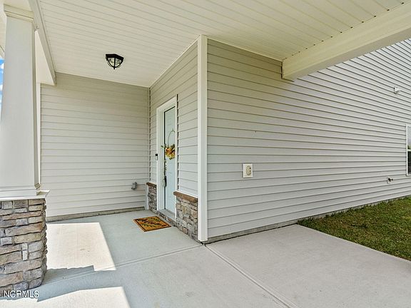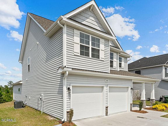 Don't miss out on this GORGEOUS home, better than new! Located in the highly desired neighborhood of Oyster Landing, extremely close to the Stone Bay gate, MARSOC, and Topsail Beach. The downstairs living area is centered by a sleek kitchen; featuring black cabinets, white subway tile backsplash, white oak open shelving, brushed gold hardware, and stainless-steel appliances. The large island accommodates four bar stools and has a large single basin sink with no divider. With double wall ovens and the electric cooktop range- you will not run out of cooking space for those big holiday or family gatherings. The Laundry Room / Mudroom is conveniently located right as you come into the garage and features a bench and cubby with hooks for all of your drop zone items. The Living Room and Kitchen/Dining is flanked with large windows- allowing plenty of natural light to stream in. There is a gas log fireplace in the living room, followed by a 10x12 covered back porch off the back of the home. The Master Suite is downstairs allowing for maximum privacy from all the other bedrooms in the home. Details include a tray ceiling, and an en suite bathroom. The Bathroom includes a dual sink vanity, separate soaking tub, walk-in shower, water closet, and sizable walk-in closet. Upstairs there is a large open loft area, full bathroom, and three secondary bedrooms all boasting nice sized walk-in closets for plenty of storage space. Inside the closet of Bedroom #2 there is a small door that leads to attic storage space. Backyard is larger than it looks! Please see associated docs for Plot Plan & Backyard Clearing Estimate. Don't miss out on the opportunity to call this home yours!!