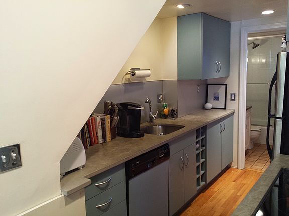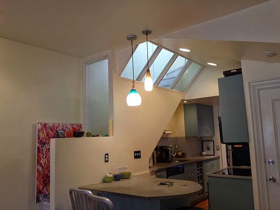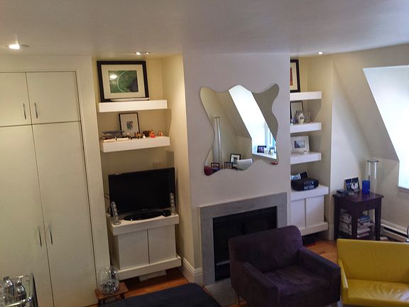 Penthouse home in 6-unit condominium building. Condo is a one-bedroom, one-bathroom, floor-through home with architect-designed interior. Living room is bright with hardwood floors. The bedroom is carpeted. There is recessed lighting throughout. In-unit washer and dryer. The private roof deck is accessible by living room stairs going up to a private cupola. The ~20'x20' deck has views of the South End, Back Bay, and Downtown Boston. In the Eight Streets section of the South End. Pet-friendly association.