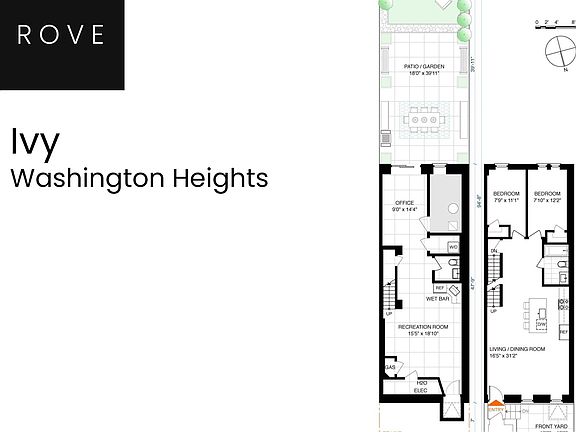 Welcome to Ivy, experience the perfect blend of luxury, comfort, and convenience in this stunning townhouse located in vibrant Washington Heights. This fully renovated 2 bedroom 1.5 bathroom duplex townhouse features a 912 square foot private outdoor space. Inside, you'll find an array of modern amenities such as an in-unit washer/dryer, an open kitchen with Silestone countertops and a glass backsplash, and a wet bar in the basement. The sliding glass door provides access to the private backyard, while bamboo privacy fences ensure a peaceful retreat. Additionally, the property offers a recreation room that can serve as a home office or be converted into a fourth bedroom or entertainment area.