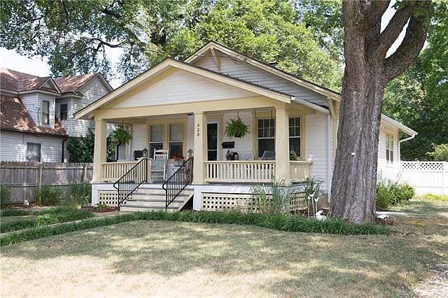 NEW PRICE! Come and sit on the front porch of this charming bungalow and sip some iced tea! Character abounds in this home with wooden floors throughout. The large backyard has a deck and you will enjoy a variety of flowers. The sitting room right off the kitchen is a perfect spot to drink a morning cup of coffee. There is a plate on the historic Hackberry tree in the front yard. Close to K-7 and I-35. This home is located in the award-winning Olathe School District and feeds into Olathe West! Come, take a look!
