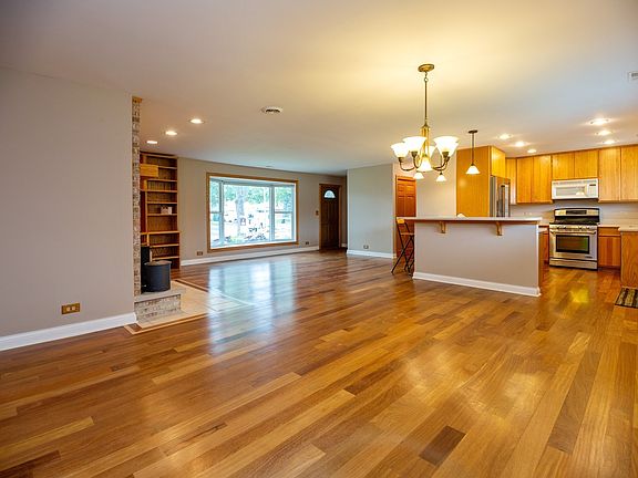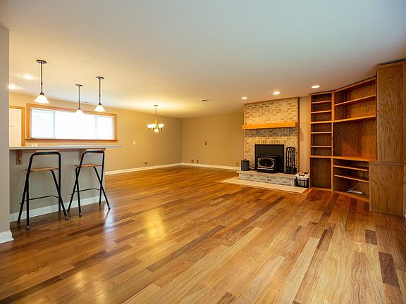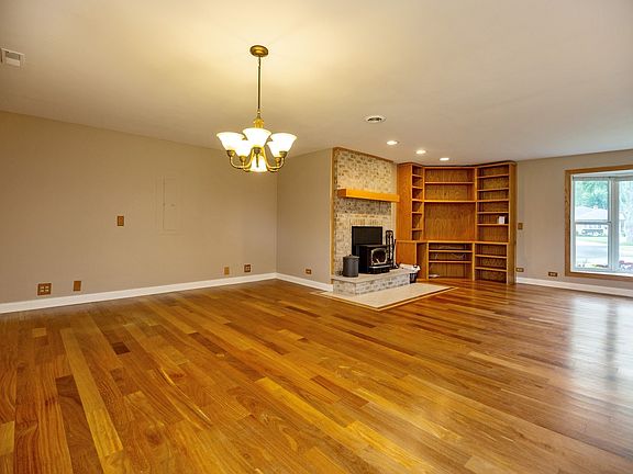 Prime location! This 3-bedroom/2-bath ranch is located in a quiet cul-de-sac and backs up to Hasbrook Park. Award-winning schools, close to shopping, Metra, library, parks/pools, Route 53. Beautiful teak, solid hardwood flooring throughout the open floor plan. A beautiful hardwood inlay surrounds the Lopi wood stove fireplace... a perfect way to heat your home during the winter months. Other features include master bedroom with master bath, newer windows (big bay window in living room), tankless water heater, stainless steel appliances. Full 2.5-car garage with lots of storage. Beautiful landscaping, mature trees, and brick paver planters - a gardener's dream! This home is move-in ready and comes with a home warranty!