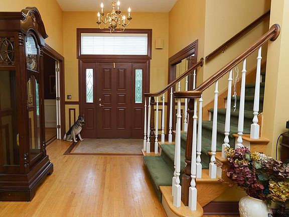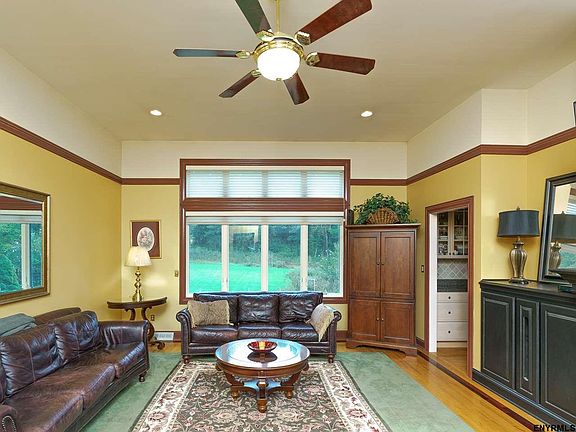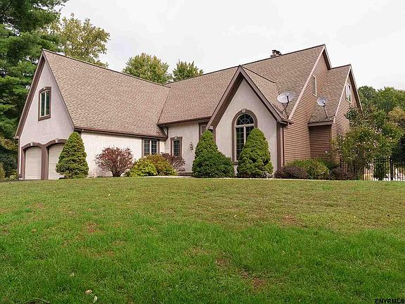 Scenic private estate. Custom home with 5 bedrooms on lush 6.6 acres. 3 1/2 bathrooms, beautiful kitchen with granite counter-top, 11 ft ceilings, and spacious first floor master suite. Second floor bonus room. In-ground pool. Desirable Bethlehem school district. Mere minutes to all major connectors; NYS Thruway, I-90, Northway, and 787. Only 10-15 minute commute to major medical center and area hospitals, as well as Colleges,Albany Law,College of Pharmacy and SUNY. Easy commute Capitol& offices.