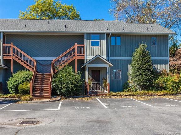 Mountain top living 5 minutes from downtown Asheville! This unique, upper level condo lets you enjoy winter views of downtown and summer privacy from your full length back terrace and year round mountain views from your kitchen window. Cozy up next to the wood burning fireplace in the living room with vaulted ceilings that is open to the kitchen and back deck through oversized sliding glass doors. The kitchen has stainless steel appliances including a double oven and breakfast bar allowing convenient service to dining area. The ideal, split bedroom floor plan finds the master off the living area with sliding glass door to terrace and master bath with double vanity. Second bedroom, also with access to terrace, is off entry hallway to the left along with dedicated laundry room and full guest bath. This unit has upgraded floors and fresh paint along with coat closet and heated utility room off terrace for additional storage. And don't miss the community pool!