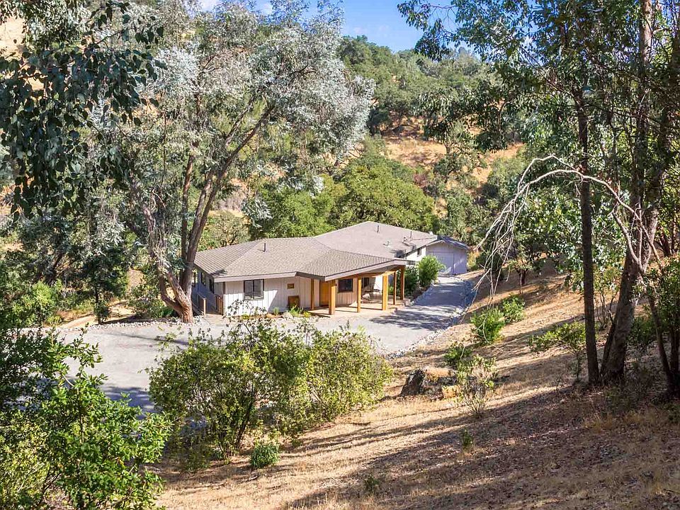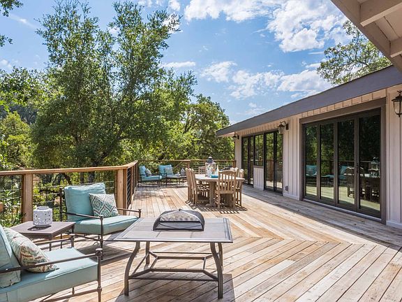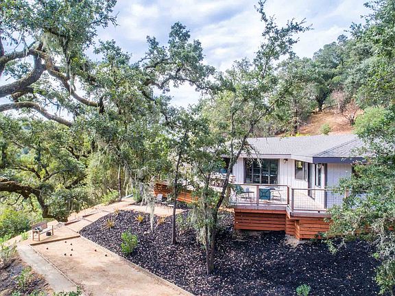 Trendy Geyserville is the home to this 3.4 acre, 4/2, remodeled single level residence. Privately situated at the end of the road, this property includes a creek & hiking trails. Vaulted ceilings invite you into the open floor plan exuding comfort & style. Luxuriate in tranquility, a Panoramic door leads to a deck where there are views of majestic oaks & expansive hillsides. Wine country at its finest, 15 minutes to the Healdsburg Plaza.