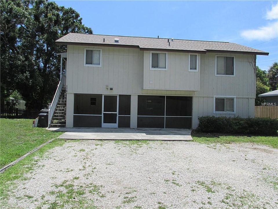 South Venice 3 bed 2 bath stilt house with the bonus of 2 bed 1 bath efficiency underneath perfect for the in-laws during season. Upper house has volume ceilings and rustic paneled walls with rear screened porch while lower level has screened lanai on front. Home comes with washer and dryer in upper unit and kitchenette in downstairs. First last and 1/2 mo. security required.