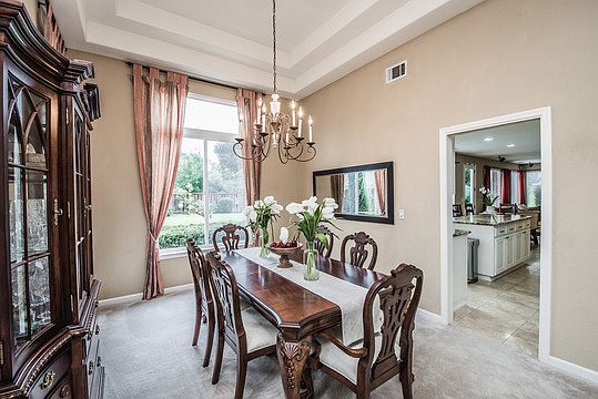 Rarely available Crystal Ranch home with large private yard and solar heated salt water pool perfect for entertaining or relaxing weekends spent at home. This beautiful five bedroom and three bath home offers three fireplaces, large three car garage, spectacular views, lots of sunlight and is updated, ready to move in. On the main floor is a bedroom with en-suite bath and office or possible 6th bedroom. Glorious master suite upstairs plus three more bedrooms and nice bath. Additionally, large great room opens to updated kitchen with plenty of sunlight streaming in from your gorgeous backyard. Monthly HOA fee $83. Must see!