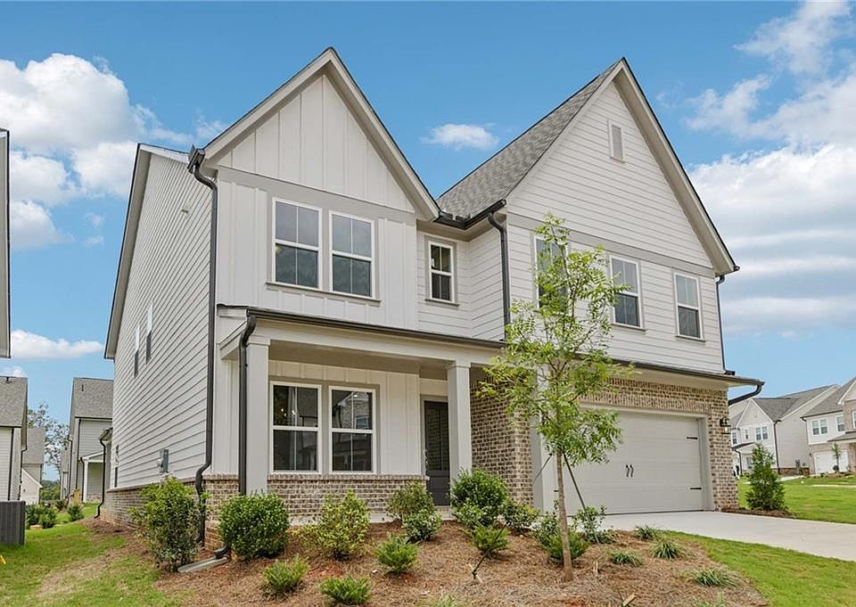 Discover the Savoy, a stunning 3,208 sq. ft. home with 5 bedrooms, 4 baths & a charming front porch. Entertain effortlessly in your gourmet kitchen & formal dining room or relax & unwind in the spacious family room. The covered patio also provides a great place to enjoy outdoor living. You'll find a sought after guest retreat & full bath on the main level in addition to the other living spaces. Journey upstairs where you'll find a sunlit Primary Suite with a trey ceiling, elegant ensuite bath with double vanities, a shower & separate garden tub as well as a generous walk-in closet. An additional 3 bedrooms, 2 full baths & the laundry room are also located upstairs. This home is the perfect blend of style and practicality. Located in the heart of Flowery Branch near the scenic shores of Lake Lanier, Eastlyn Crossing offers a stunning collection of single-family homes and townhomes in a vibrant community. Enjoy the charm of historic downtown Flowery Branch, where you can stroll through unique boutiques, relax in cozy cafés, and browse the local farmer’s market. Spend your days exploring nearby attractions, from Alberta Banks Park’s tennis courts and playgrounds to the recreational opportunities at Lake Lanier Islands, including hiking trails, golf, waterslides, and lakeside dining. Closer to home, residents can relax by the cabanas at the pool or enjoy a friendly game on the pickleball courts. At Eastlyn Crossing, you’ll find the perfect balance of comfort, connection, and adventure. This home has a projected delivery date of October 2025. For further details and information on current promotions, please contact an onsite Community Sales Managers. Please note that renderings are for illustrative purposes, and photos may represent sample products of model homes or homes under construction. Actual exterior and interior selections may vary by homesite.
