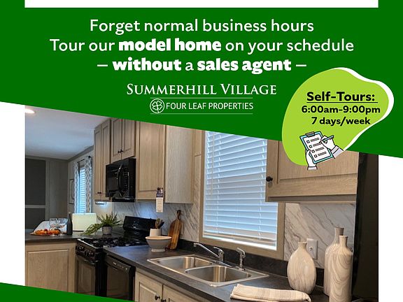 Tours available 7 days a week from 6am-9pm, just book a time slot and see it for yourself. Go to our website, navigate to our Summerhill Village community page and look for the UTour button on the side of the page!
