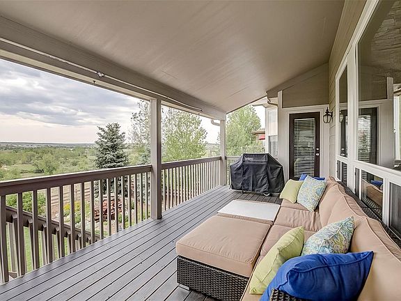 Executive home with a main floor master backing to an expansive open space. Open floor plan with large picture windows providing ample natural light and views of the open space. Numerous upgrades including refinished hardwood floors, lighted ceiling fans in all the bedrooms and great room, stunning 2-story stone gas fireplace, covered deck and patio with expanded patio, built-in surround sound and a professionally installed water feature and Koi pond. Spacious gourmet kitchen with stainless steel appliances, double ovens, gas range, walk-in pantry, premium granite countertops, glass cabinet doors and travertine backsplash. Main floor master bedroom with a bay window overlooking the open space views and a romantic double sided gas fireplace. Upstairs has three large bedrooms and a bonus room perfect for games or studying with built-in desks. Enjoy Colorado evenings on your covered deck and expanded patio overlooking the view of the private open space.