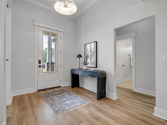 Modern Farmhouse Luxury in Pine Dove Farm Step into timeless elegance and modern comfort with this stunning new construction Craftsman-style home in the sought-after Pine Dove Farm conservation community. Situated on a spacious ½-acre lot, this thoughtfully designed 4-bedroom, 3-bathroom home blends refined finishes with a connection to nature and community. Inside, you'll find soaring 11-foot ceilings, elegant brass fixtures, and custom tray and coffered ceilings that add depth and dimension. The expansive open-concept layout includes a dedicated office, perfect for remote work or study. The kitchen features a large island, stainless steel appliances, quartz countertops, and ample storage—ideal for entertaining or everyday living. A dramatic four-panel multi-slide glass door seamlessly connects indoor and outdoor living, opening to a generous covered porch and deck—perfect for al fresco dining or enjoying serene views. Retreat to the luxurious owner’s suite complete with a spa-like bathroom, including a soaker tub, walk-in shower, and designer details throughout. The large laundry room with mudroom adds functionality, while modern touches like a smart charging station and Generac-ready setup ensure convenience and peace of mind. Located in Pine Dove Farm, residents enjoy access to a working farm, organic gardens, fresh produce, and a true farm-to-table lifestyle.