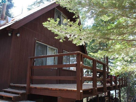 There are some views from this 2 story home in Alpine Village. 2 bdrms & 1/2 bath on the upper level with a small sitting area in between. The main level has 1 bdrm, 1 bath and open living/dining/kitchen area. Deck wraps around 2 sides of the cabin and it sits back off an easement road for privacy. Knotty pine and beamed ceilings. New propane heater installed. A new wood stove is coming too.