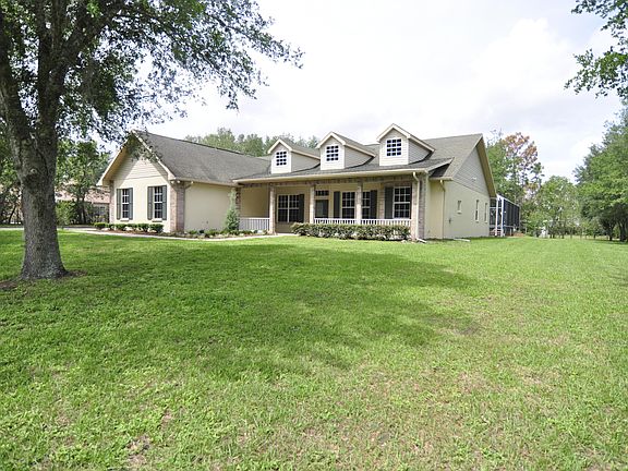 Situated on 2.4 acres, this custom Artistic Home features a full in-law suite w/ kitchen, living room, laundry closet, 2 bedrooms and 2 full bathrooms. In the main area of the home, the master suite has large closets, double vanities, walk in shower & tub. The home has beautiful stained trim, crown molding, fresh paint, wood floors, central vac system, granite counter tops, appliances & ceramic tile throughout. Enjoy the spacious front porch with a beautiful view of the front yard. Exterior features include: sprinkler system, a 30' X 50' open warehouse, 30' X 50' enclosed warehouse w/ 2 12' overhead doors & office space inside w/ a full bathroom, new 5 ton A/C system, large back lanai with in-ground pool cleaning system and heated jacuzzi. There are just too many features to list!