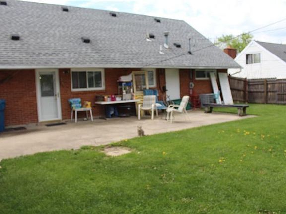 Brick and vinyl exterior for a no maintenance home. Open floor plan with many updates. 2 first floor bedroom, and a full bath. 2 large bedrooms and full bath on second floor, with full fenced back yard and large cement patio. Large doublewide drive gives you parking for many cars plus a large garage with storage and vinyl utility shed for all those extra items. Updated Kitchen and baths, newer carpet upstairs. First floor hallway is cork, parka in 1st floor bedrooms, ceramic in kitchen and bath, and easy care laminate in living room and dining area. Central Air throughout & additional Window unit back ups on 2nd floor. All appliances to convey (range, refrigerator, dishwasher, washer/dryer) including side by side refrigerator in garage. Kitchen has pass through to dining area. The Ohio Model. Motivated seller will consider. Lease/Purchase if qualified buyer and money down.