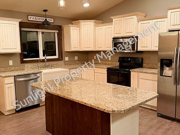 This exceptional five-bedroom, 3.5-bath home offers spacious country living just outside of town, surrounded by beautiful open-land views. The master suite is privately situated on its own upper floor and features a luxurious soaking tub, dual closets with built-in shelving, and abundant storage throughout. The main living area showcases a beautiful fireplace and charming country-style white wood cabinets that add warmth and character to the home. Additional amenities include a dedicated movie room, a large yard with a playset, and a generous deck ideal for relaxing or entertaining. The property also offers underground sprinklers maintained by the owner, a three-car attached garage, a chicken coop, and a designated garden area. Situated on a well and septic system, this home provides peaceful rural living with modern comfort and plenty of space to spread out.