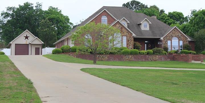The home of your dreams. Quality built & updated this 3BR/2.5B has tall ceilings a chef's kitchen with center island, 2 dishwashers, built-in Oven/Microwave, granite, 5-burner gas range, & lots of Oak cabinet storage. The Kitchen is open to the dining area & office/bonus room. The master bath has a private enclosed patio. The main living area has a WBFP with a view of the back-covered patio, yard, & neighbor's zebra, water buffalo, & horses. This property features a concrete circular drive, 3-car garage, & 500sq workshop w/rollup door. Too many amenities to mention & all on a rolling acre.
