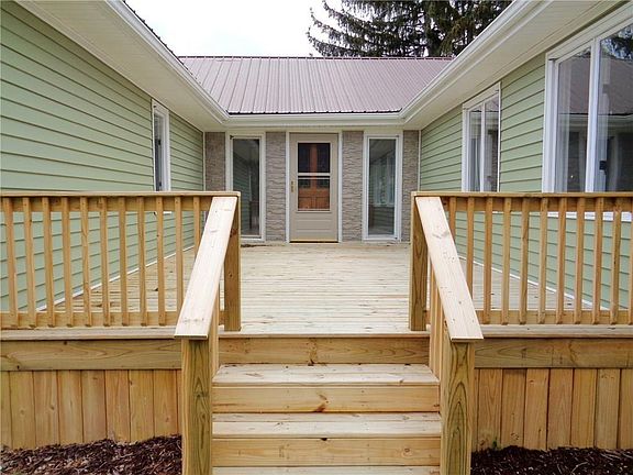 One floor living just outside the Village of Canisteo. Nice neutral colors through out home. Metal roof about 10 years old. New vinyl siding and front deck. All four bedrooms are good sized. Home has a nice flow with the large sized living room. Huge kitchen with plenty of cabinets. Off the kitchen leading to garage is a good sized mud room. Beautiful view from the living room!