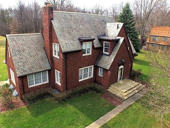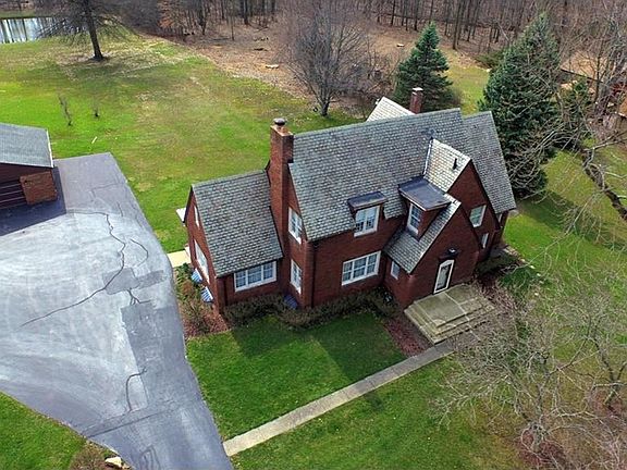 This all brick 1928 built Tudor style home is located on a long, beautiful stretch of property complete with a privacy friendly, foliage-filled front yard and expansive rear with a private pond. A slate roof compliments the white trim on the brick. Inside the brightly appointed rooms feature rich crown molding and tall baseboards. Arched doorways are found throughout the home, including the upstairs master bath; adding to the flavor. A large, well-lit kitchen features updated countertops and cabinet work with offset dining and nook areas. Bedrooms are spacious and sun filled; with the master featuring a walk in closet. Hardwood flooring is dominant on the main level, while carpeted flooring can be found upstairs throughout. A finished basement with wood paneling and lower floor laundry complete the package. An offset 2 car garage is found outside.