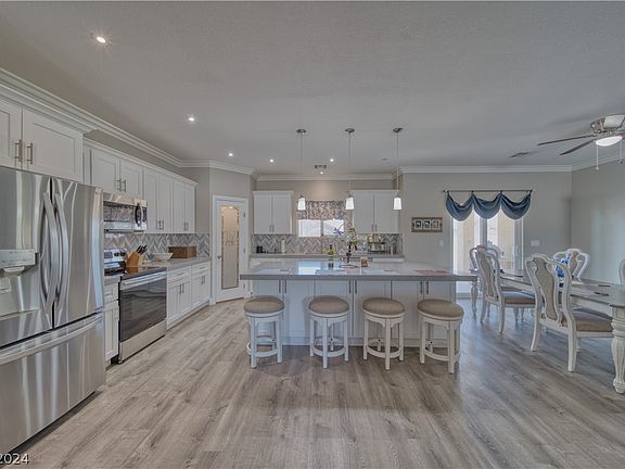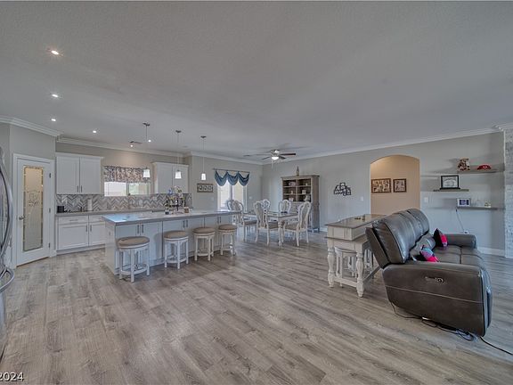 This Like New Beautiful maintained home is located in Artesia at Hafen Ranch. You will find 2 Primary suites & the 3rd bedroom/den that has a custom made book shelf that's a Murphy Bed. This home has a Fabulous Open Floor Plan a Perfect place to call home. Preview the Center Island Kitchen w/ all appliances overlooking the great room with a cozy fireplace. Water proof laminate flooring & Quartz Counters are found throughout this home. Crown Molding accents in the Great Room. Laundry Room with utility sink and washer and dryer. Oversized 3 car garage with back yard access, RV Gates with RV parking and full RV hookups in the 1/3rd Acre spacious back yard including a Labyrinth a part of your backyard design, which is the circle you see in the back yard pictures. You Must See this spacious yard to appreciate it. Just 50 minutes to Las Vegas & located in the South Pahrump Valley. The community offers a dog park, walking park, playground & a Community Center that holds Community Events.
