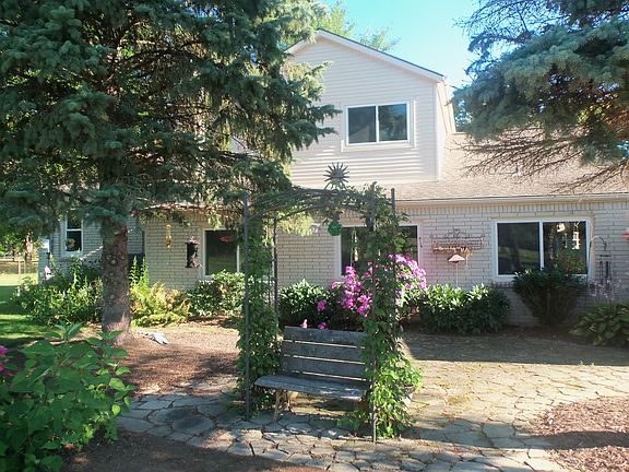Lovely updated country home situated on 4.9 rolling acres with a huge barn and a private 1/2 acre spring-fed (stocked) pond with dock. Incredible yard offers a large covered back patio with gorgeous perennial gardens and spectacular landscaping. The property is completely fenced in with a gate. Updated kitchen offers large Island, ceramic flooring, solid-surface counters and oak cabinets galore. Newer All Weatherseal replacement windows throughout. Dining room with sitting area has newer carpet with cove ceilings. 2 Large master suites - one upstairs with built-in attic storage and closets and one on the main floor with duel closets and a ceramic bath. Family room with wood burning fireplace and eating area. 2 car garage with cast-iron wood burner and countertops and cabinets for additional storage. Perfect for the nature loving family looking for an escape from the city while still being close to all the necessities.
