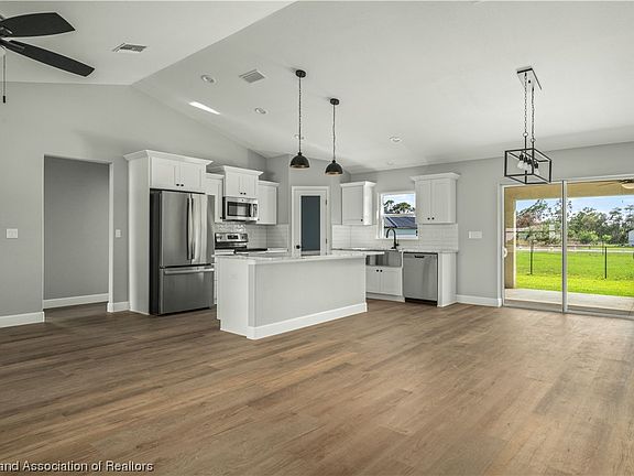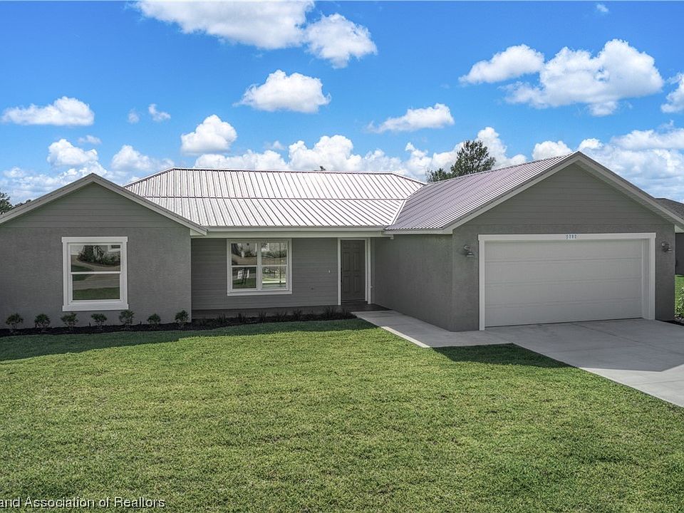 Brand New Construction that is ready for immediate occupancy. All the extras you would want. Metal roof for peace of mind. Luxury vinyl wood plank floors throughout the entire home with a nice tile wood plank at the front porch. Upgraded granite counter tops, white shaker cabinets with soft closing drawers and full stainless steel appliance package. Primary has tray ceiling and is spacious. En-suite has large walk in shower, dual vanity and lots of storage. Guest bedrooms are spacious and joined by their own bathroom. Garage is oversized and has side entry golf cart garage entrance. Well irrigation with flora-tam sod for a lush yard. The rear open porch is under trusses and can easily enclosed for more square footage or screened in for Florida lifestyle living. Plenty of room in your backyard for a pool. Sun n Lake has underground utilities, central water and sewer. No HOA in this section (community assessment does apply). Sun n Lake has an active golfing community lifestyle with 2 championship 18 hole golf courses, community pool, pickle ball courts and more. Come find your paradise home here. Other available new construction almost ready too. Ask for more details.