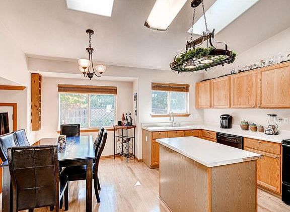 A rare opportunity to own a home at this price in the desirable Park View Meadows neighborhood *Highly acclaimed Cherry Creek School District *Inviting open floor plan with an abundance of natural light * Spacious living room with vaulted ceiling and coat closet *Eat in kitchen with skylights, hardwood floor, center island, ample counter space and plenty of room for a table in the nook.*Large family room with gas fireplace and tile surround and access to the deck *Master bedroom has its own private bath with double sinks *2 additional bedrooms upstairs share a full bath *A fourth bedroom, bath, bonus room and laundry hook ups in the basement are ideal for extra living space *Fenced yard with large deck, play area and flower gardens * Community pool, park/playground, and Timberline Elementary School *Close to E470 and Southlands Mall. Needs some TLC, sold in "as is" condition but a great value at this price. Other neighborhood homes sold for $320,000 and up.