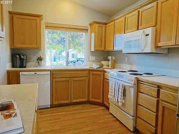 The perfect starter home or place to downsize to a single level. True hardwood floors in kitchen & hallways, 11' vaulted ceilings throughout entire home, new paint inside & out, brand new 50 year roof with transferable warranty. Located just one block from running/biking trails and only minutes to fishing/recreation on the Multnomah Channel & Columbia river. Huge fenced backyard with beautiful landscaping and room to garden!
