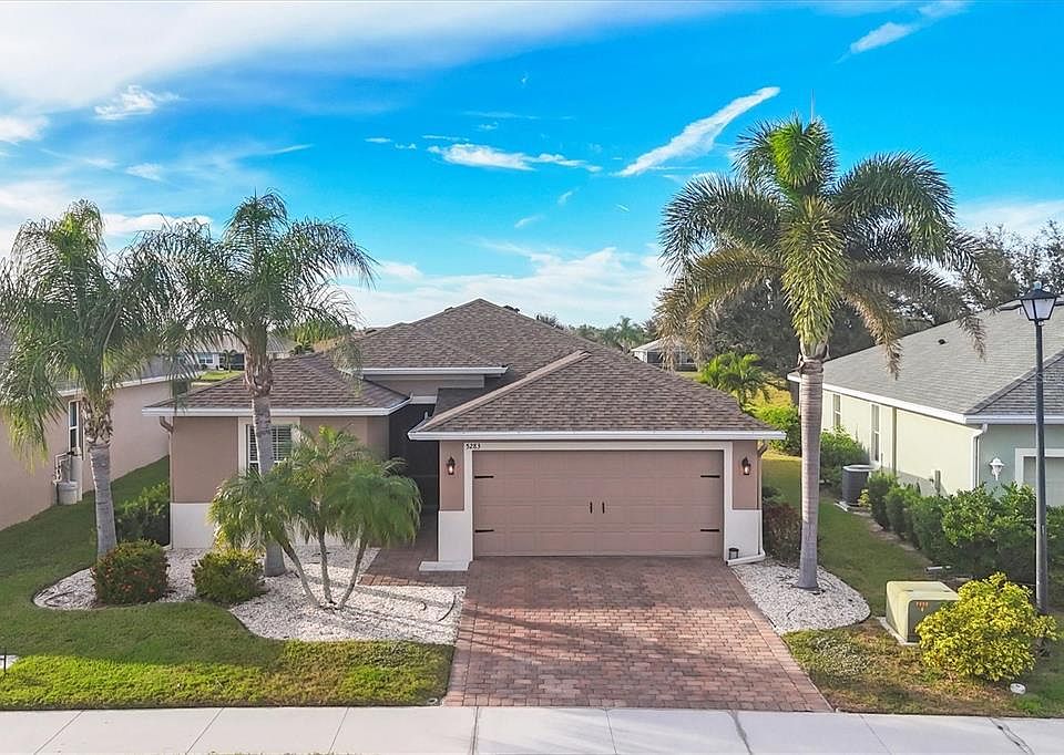 One or more photo(s) has been virtually staged. Wonderfully maintained Venice home with a gorgeous lake view!!! There are no CDD fees in Ventura Village, and the HOA dues here amount to less than $95/month. This gated community is very close to Venice, Manasota and Englewood beaches, as well as to an array of shopping and restaurants from which to choose. This particular 3-bedroom, 2 bath home has a brand new roof (2025), newer HVAC (2022), 3 coats of fresh paint to the exterior, and NO flood damage from the recent storms. The garage is oversized lengthwise for extra storage or for creating a workspace for your DIY projects. The electric panel is set for a generator plug-in with transfer switch for those emergencies, and aluminum storm panels are also included. This great home is not to be missed and priced to sell, so call to schedule your private tour soon!