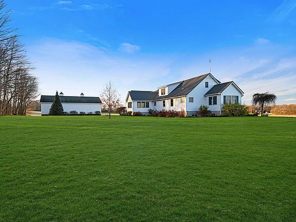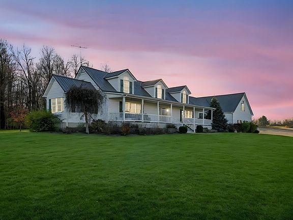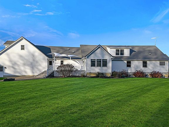 Beautiful home and pole barn, situated on 40 acres of land south of Syracuse. This property features 5 bedrooms and 5.5 bathrooms, with approximately 5,500 square feet of finished space, along with plenty of finished and unfinished storage. The home includes a large kitchen with a walk-in pantry, a lofted foyer, and stairs. There is a huge finished basement equipped with daylight and egress windows, as well as a newer metal roof. The property also boasts an oversized 3-stall garage (24X36), a 60-foot country porch in the front, and a large rear deck with a patio and fire pit. Additionally, there is a 40x60x16 pole barn that has water, electricity, and a 30A RV/generator connection, as well as a buried 1,000-gallon propane tank. The spacious, irrigated yard includes producing apple trees and an area suitable for a large garden. A total of 40 acres encompasses about 25 acres of farmland and 10 acres of pristine woods, complete with walking paths, wildlife, and hardwood trees. The property is zoned for agricultural use. You’ll enjoy beautiful views from all areas of the home. With many amenities and upgrades, this estate is a turn-key home ready for you to move in.