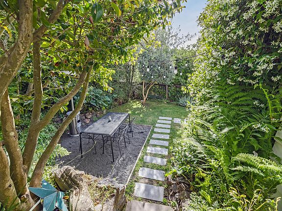 This delightful and tranquil Cape Cod-style home is perfect for a small family. It features two bedrooms, a laundry area, ample storage, a playroom, exercise equipment, a roomy and cozy living room, a backyard with a sauna, and a beautiful kitchen. The house is ideal for remote work, boasting two separate, well-lit spaces for creative work, private study, or constant Zoom calls. The backyard includes a dining area, seating structure, and sauna, all designed and re-landscaped by Open Space Studio in 2019. The front patio offers a custom-built seating area shaded by a stunning persimmon tree and an enchanting beanstalk. The garage has been transformed into a well-lit studio with a large desk, workbench, weight rack, and both shelved and lofted storage. The driveway can fit two cars, with additional parking for two more cars directly in front of the house. House is available until August 1 2025 Owner pays gardening (1x every 2 weeks). Renter pays utilities.
