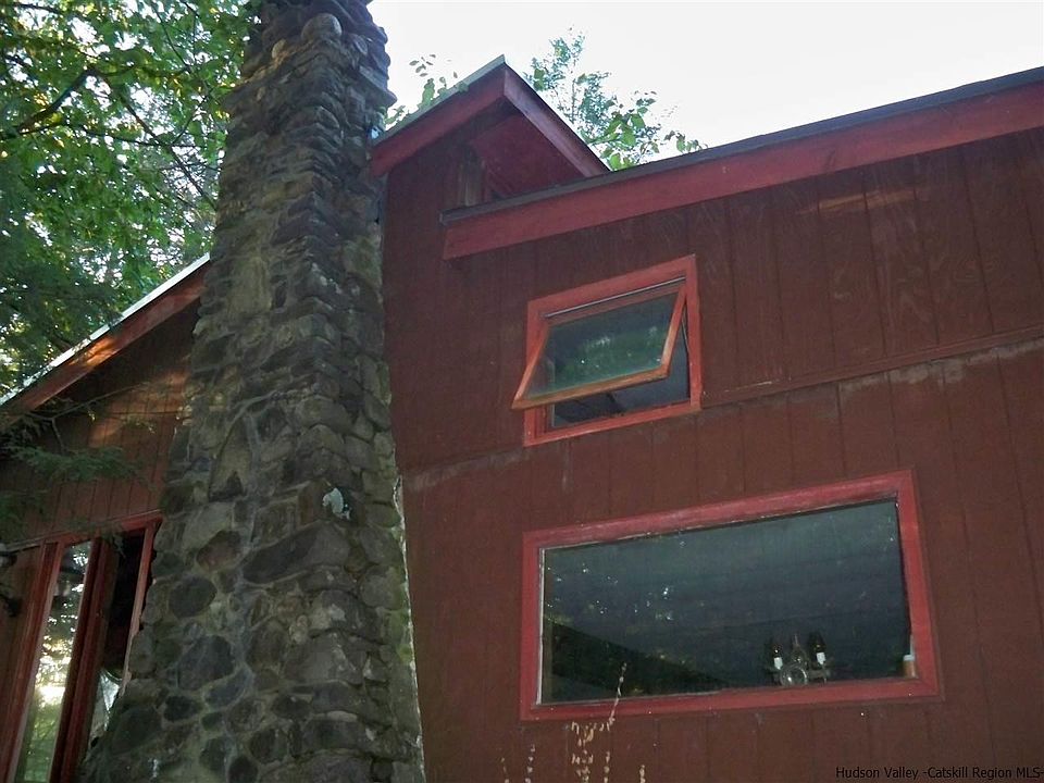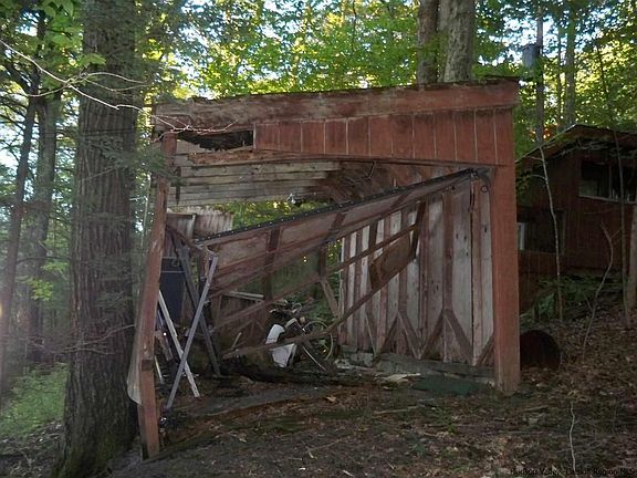 A fixer upper retreat in the woods. If you have the imagination, this one is for you! CAUTION!!! DO NOT GO INTO HOME OR ON BACK DECKING (unsafe). Great home setting for outdoor sports & hunting. There is an additional studio and garage and has been neglected for many years. This property is being sold as land and the buildings are extra. There is a pond in the back w/a stream. Included are separate deeded lots, 3.9 acres across 212 with the Beaverkill stream running thru and with a private road. Two lots located in the town of Woodstock 8.5 acres and 12.3 acres. There are mountain views with the house on 7 acres in Shandaken and additional 1 acre, a total of 32.7 acres. The main house has been neglected too. The roof has fallen in, yet the interior seems to have a lot of nice features. There is a stone fireplace in living room, stone foundation, cathedral ceilings, skylights and an enclosed walkway from the garage to the house. Lot's of potential and please make many offers.