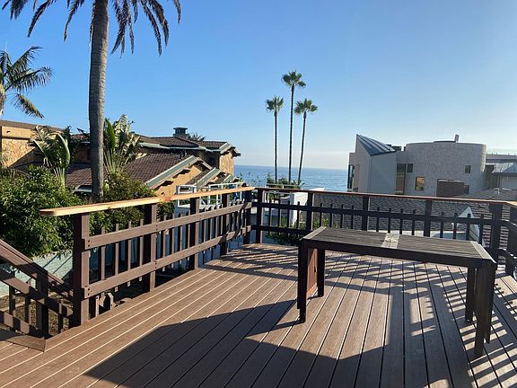 Summer never ends at 5283 Shore Drive. This charming house, west of Carlsbad Blvd is a short walk away from Terramar beach. Easy beach access is provided by 2 nearby access points. Enjoy beautiful ocean views and sunsets from the newly renovated spacious 300 sf deck. The property is just minutes away from Carlsbad village, restaurants, cafes, shops and Costco. There are two bedrooms, one bath, a spacious living room with a fireplace, and a dining area. The kitchen features a stainless steel side-by-side refrigerator, a gas stove, and copper countertops. Hardwood floors throughout the house and Italian marble in the bathroom. It is a perfect place to enjoy and relax by the sound of waves and ocean breeze all year around. Freshly painted inside and out. Large patio area. Outdoor charcoal grill. Newly overseeded lawn. 6,000 sf usable lot. Washer and Dryer included. 10-month lease. Utilities are not included.