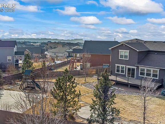 Extremely Rare Opportunity in Cordera! Discover this exceptional 5-bedroom, 4-bathroom home on one of the largest lots in the Cordera community—an impressive 15,584 sqft in a desirable cul-de-sac location. This unique floor plan offers 3724 sqft of living space, a massive 4-car garage, and a fully finished basement equipped with theatre upgrades, including surround sound, a 120-inch retractable screen, and all necessary equipment for an immersive experience. Enjoy Colorado living at its finest with an enormous extended composite deck measuring 36 feet long, complete with metal railing and a natural gas BBQ stub-out. The giant backyard is a true retreat, featuring a 30ft x 25ft sport court with a basketball hoop, a stamped concrete patio, a playset, and mature trees for added privacy. Inside, you’ll find a home designed for both entertaining and family living. The formal dining room and eat-in kitchen provide flexible dining options, while beautiful hardwood floors add warmth throughout. The upper level includes 4 bedrooms, including a luxurious primary suite with a 5-piece master bathroom. A main-level office offers the perfect space for working from home. Located in the award-winning Academy School District 20, this home is within walking distance to schools, parks, and trails, and just minutes from restaurants, shopping centers, and gyms. The family-friendly neighborhood completes the picture, making this home an extraordinary find. Don’t miss out on this rare gem in Cordera—schedule your showing today!