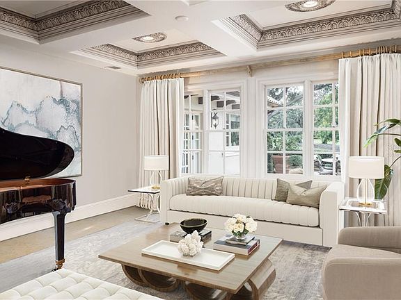 - Interior Features: Ceiling Fans(s), Eating Space In Kitchen, High Ceiling(s), Master Bedroom Downstairs, Stone Counters, Walk-In Closet(s), Crown Molding, Solid Wood Cabinets, Thermostat, Kitchen/Family Room Combo, Built in Features, Window Treatments, Central Vaccum, Dry Bar, Coffered Ceiling(s)