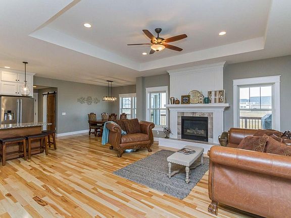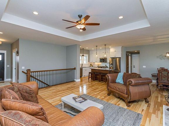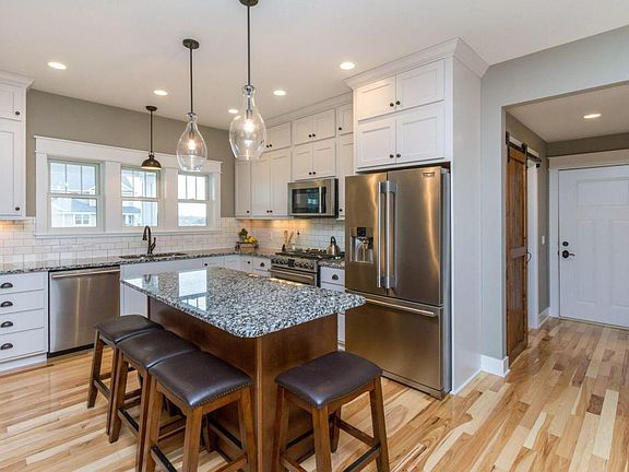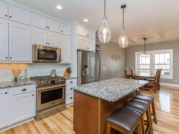 Spacious 5 bedroom home with over 3500 SF of living space in Cameron Estates. The chef will love the large kitchen with upgraded appliances, granite countertops, large island, and walk in pantry with sliding barn door. The living room is inviting with beautiful hardwood floors, gas fireplace, and lots of natural light. Relax in the oversized master bedroom suite with spa tub and tiled shower. The finished lower level has three additional bedrooms, 2 baths, and a large family room with kitchenette. Conserve energy with the zoned heating/cooling, LED canned lights and a heat pump. Enjoy entertaining and watching sunsets on the large covered deck overlooking the spacious fenced in back yard. Recent updates include a large fenced in patio, landscaping, and custom built fence.